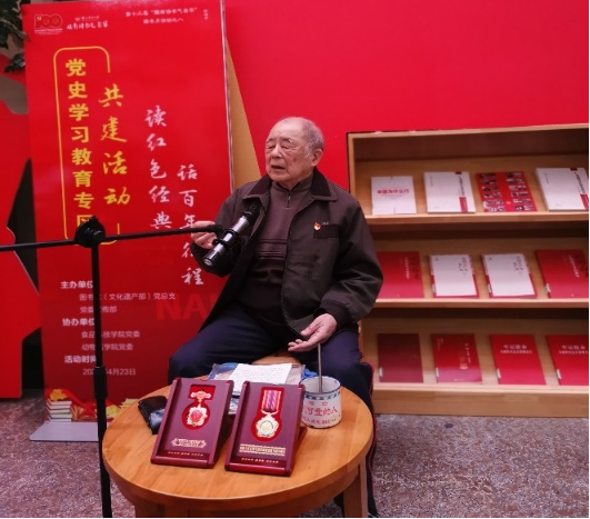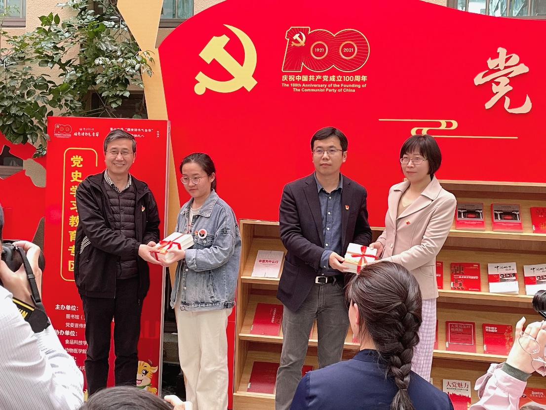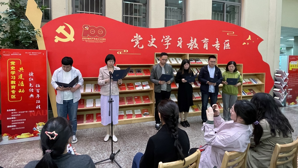 历史是最好的教科书,中国革命历史是最好的营养剂。为了迎接中国共产党百年华诞,2021年4月23日,南京农业大学图书馆党总支和党委宣传部在图书馆一楼联合举办了第十三届“腹有诗书气自华”读书月之“党史学习教育专区”共建活动。bat365正版唯一官网食品质量与安全教工党支部(以下简称食安教师支部)和动医学院研究生党支部共同参与了此次党史学习教育。bat365正版唯一官网党委书记孙健、副院长辛志宏应邀出席了本次活动。