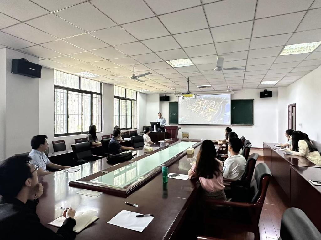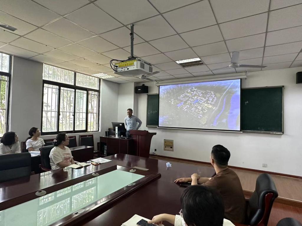 夏镇波通过PPT图片给大家展示了新校区选址的优越性——长江之滨,风光秀丽;展示了豪华精美的教学楼、宽敞明亮的图书馆、特色轴线的美丽园区以及等比建设的主楼——校友之家。